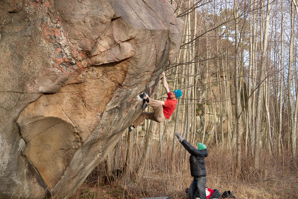 Roligt område med lite blandade problem, slabbar såväl som brant campusklättring. Känner inte till särskilt mycket om namn och grader. Potential för flera fina nyturer om man är modig, en del block är rejält stora.
