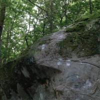 Område med väggar och friliggande block utspridda i fin-fin skogsmiljö.