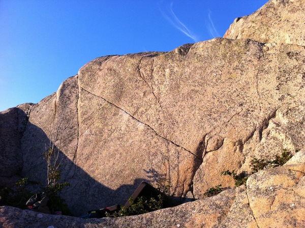 Detta kan mycket väl vara klättrat redan. Bara släng / ändra det isåfall. En rund arete med sprickor på ena sidan. Fortsätt ca 100 meter från Gail devers. Man får gå upp lite i snåren för att komma dit. Jag toppade ur åt vänster i sprickorna men man kan göra lite olika. Sittstart är också görbart (gissningsvis liknande grad). Nog inget man åker till men om man råkar vara där så varför inte.